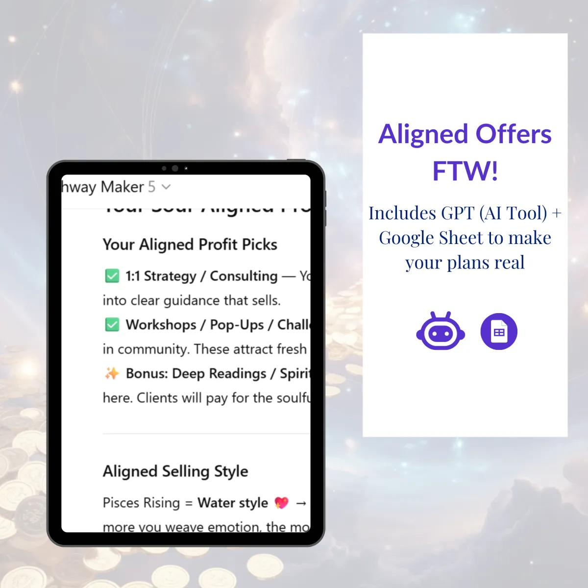 Instead of following cookie-cutter strategies, the Profit Pathway Maker uses your cosmic blueprint to reveal where your energy + offers align.